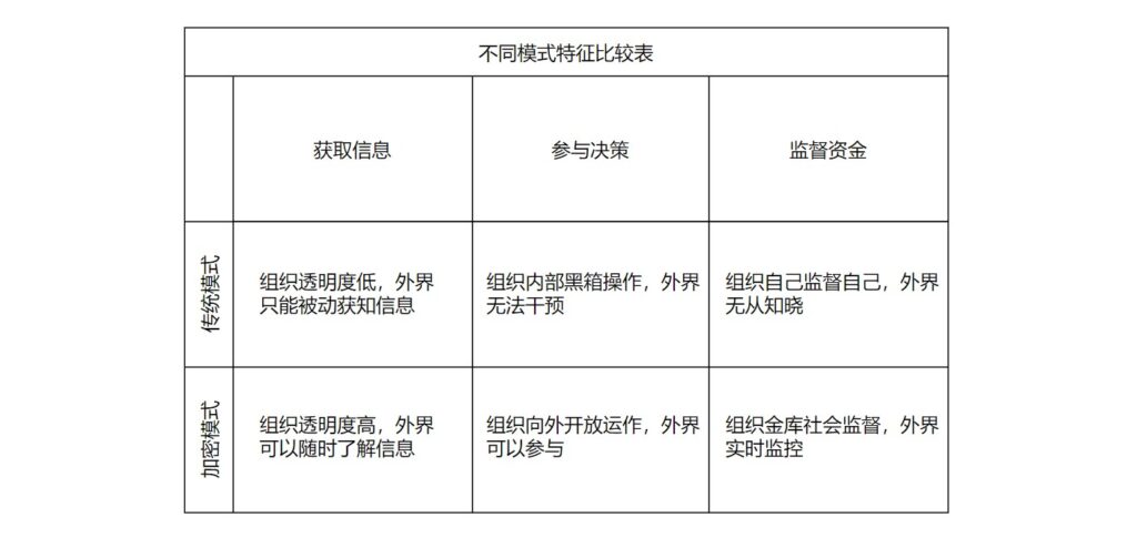 以区块链为基础的技术提供了解决方案。它的透明性,抗审查,匿名性,安全性,可以让人们方便地查看组织动态,参与组织决策,监督组织财务。这使人们对组织的信任度大大提高。
